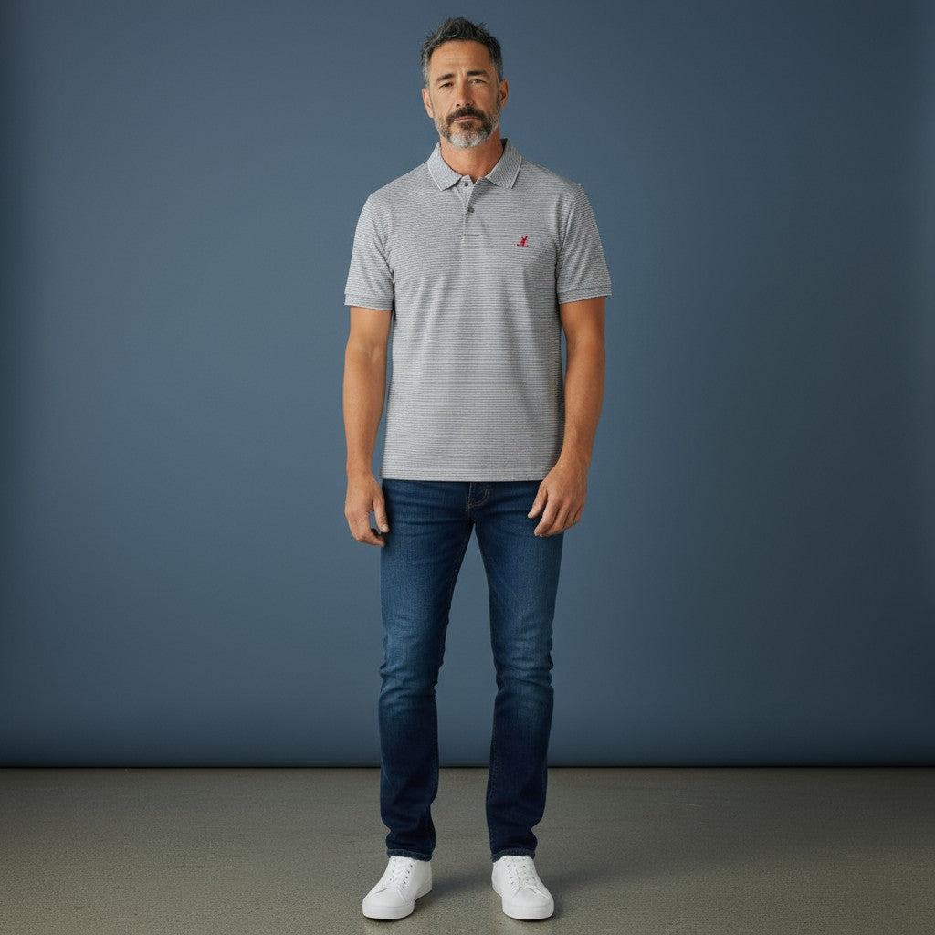 Roll Tide in classic style with this striped Black Alabama polo. Made with soft, breathable fabric, this polo keeps you cool and comfortable whether you're cheering from Bryant-Denny Stadium or enjoying a day out. The sharp stripe pattern gives it a refined edge, while the embroidered Alabama “A” logo on the chest proudly shows your Crimson Tide spirit. Perfect for game days, golf outings, or everyday wear.