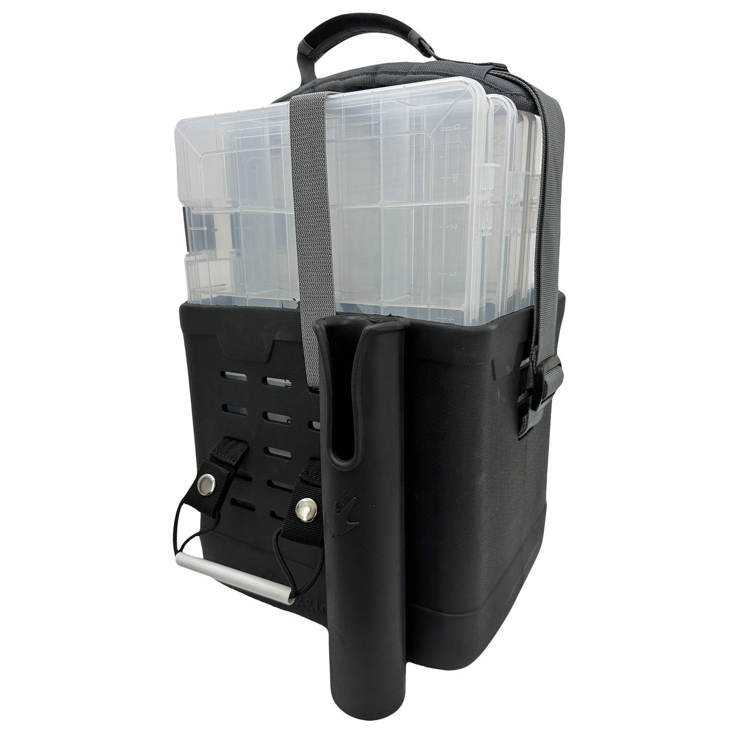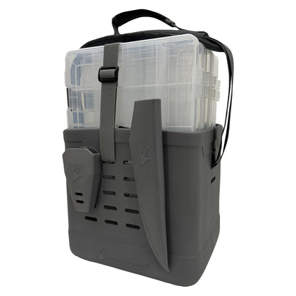 This kit includes four 3700 size utility trays, providing ample space for tackle organization. The MOLLE style attachment slots enhance its versatility, allowing for the addition of plier holders, rod holders, and other essential fishing accessories.