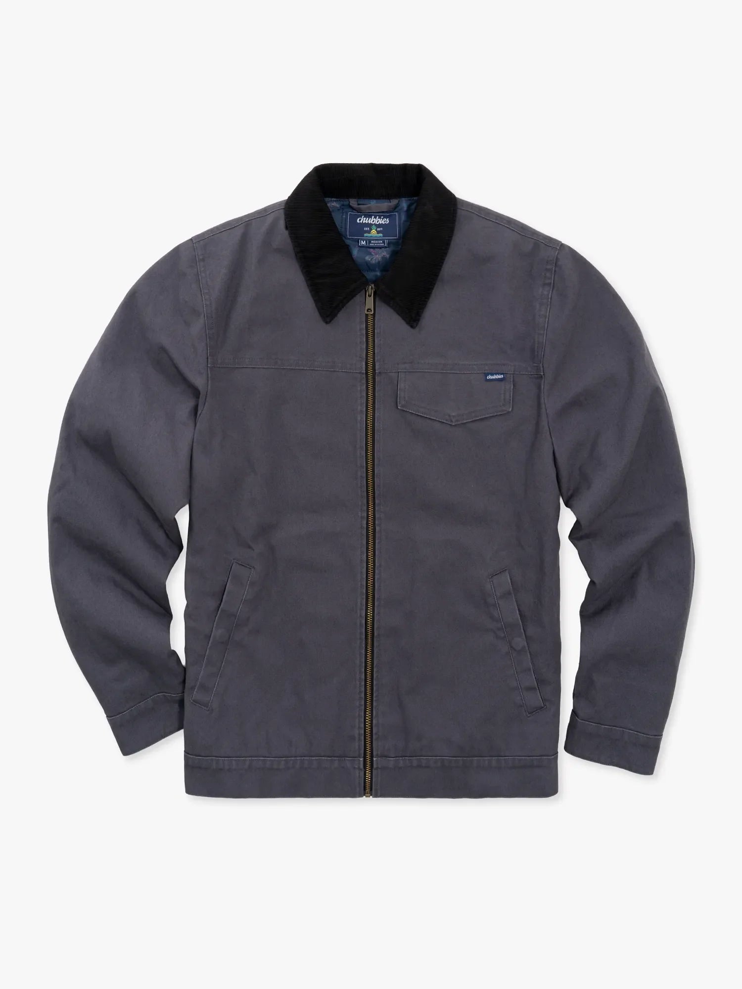 Introducing the Smoked Glass Full-Zip Canvas Jacket, designed for those who seek warmth and style during transitional seasons. This heavyweight jacket is crafted from durable canvas and features a quilted interior, ensuring you stay cozy during chilly evenings.