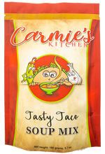 Experience the delightful taste of a taco in a comforting soup form with Carmie's Kitchen's Tasty Taco Soup Mix. This all-natural soup mix is designed to provide a quick and easy way to enjoy a flavorful meal that the whole family will love.
