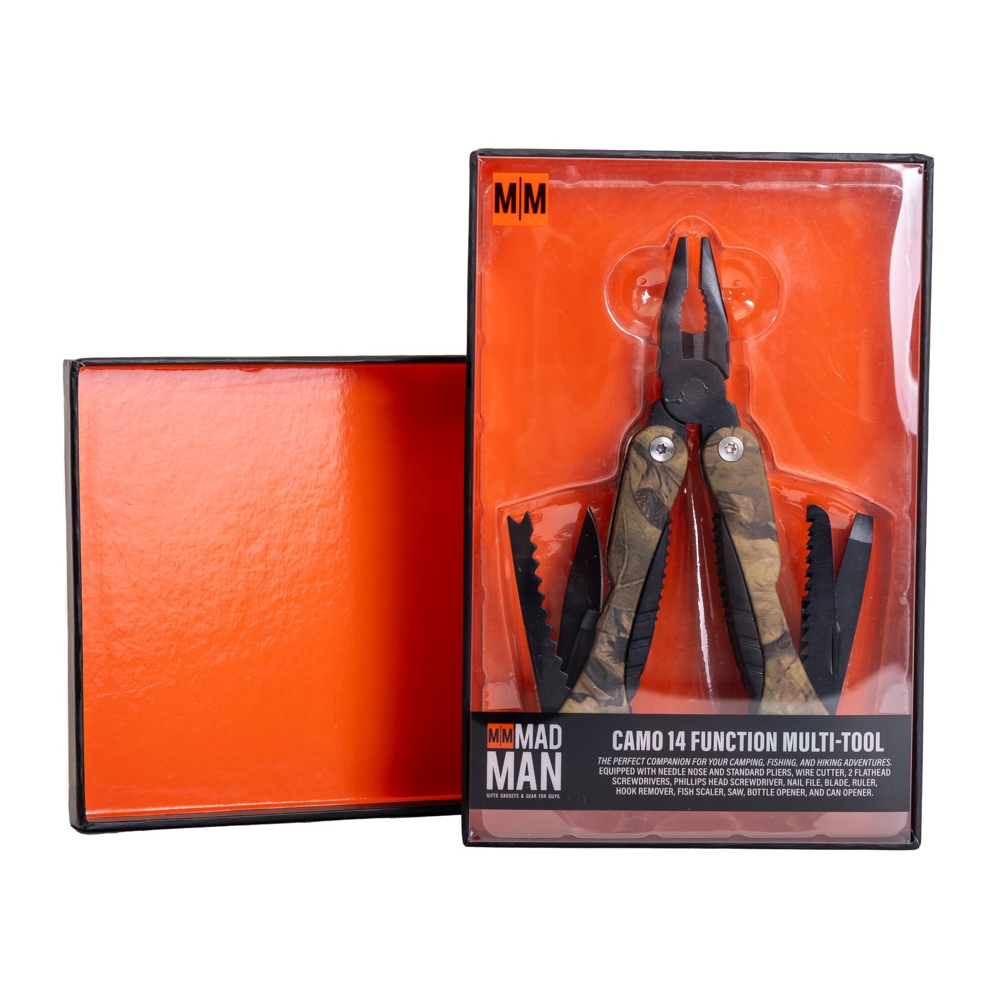 Stay prepared for any outdoor adventure with the Camo 14-piece multi-tool, a versatile companion for camping, fishing, and hiking. Designed for practicality and style, this tool offers an array of functions to suit your needs.