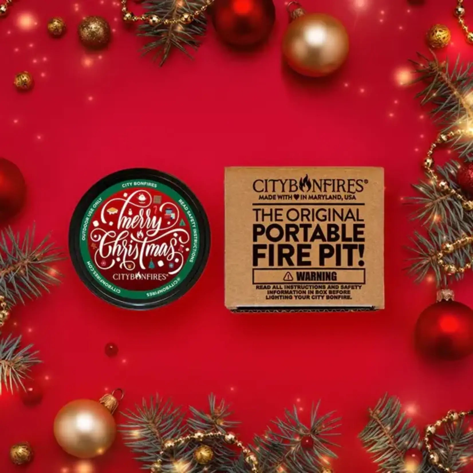 The City Bonfire Merry Christmas Edition is a portable fire pit that offers a unique and festive experience for outdoor enthusiasts. Handmade in the USA with nontoxic materials, this compact fire pit is designed to be easy to carry on all your adventures.