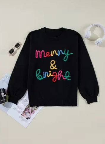 Celebrate the season in style with this “Merry & Bright” holiday sweater, featuring a colorful tinsel script graphic that adds the perfect touch of cheer. Made from a soft and cozy blend of 50% viscose, 28% polyester, and 22% polyamide, this festive knit is designed for warmth, comfort, and a flattering fit.