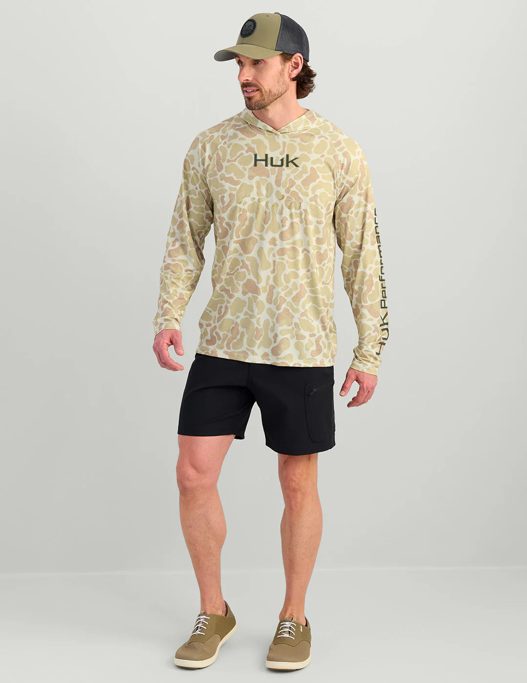 The Huk Men's Airweight Printed Hoodie is designed for anglers who demand performance and comfort. Made from ultra-light, super soft fabric, this hoodie offers excellent stretch, allowing for unrestricted movement during any activity.