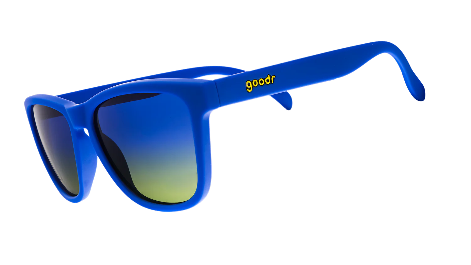 Experience the ocean's allure with Blue Lobster's Scuba Revenge sunglasses. These striking blue OG sunglasses feature blue-yellow ocean lenses, combining style and functionality for your outdoor adventures.