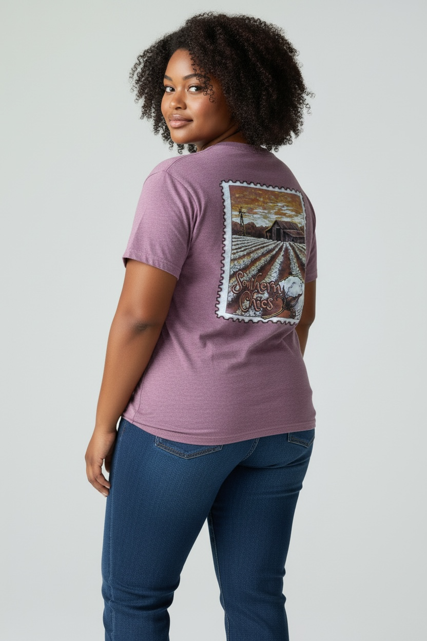 Experience the perfect blend of style and comfort with the Cotton Stamp Tee by Southern Chics. This unisex soft-style tee features a rustic trout graphic design, making it a must-have for any fishing enthusiast or outdoor lover.