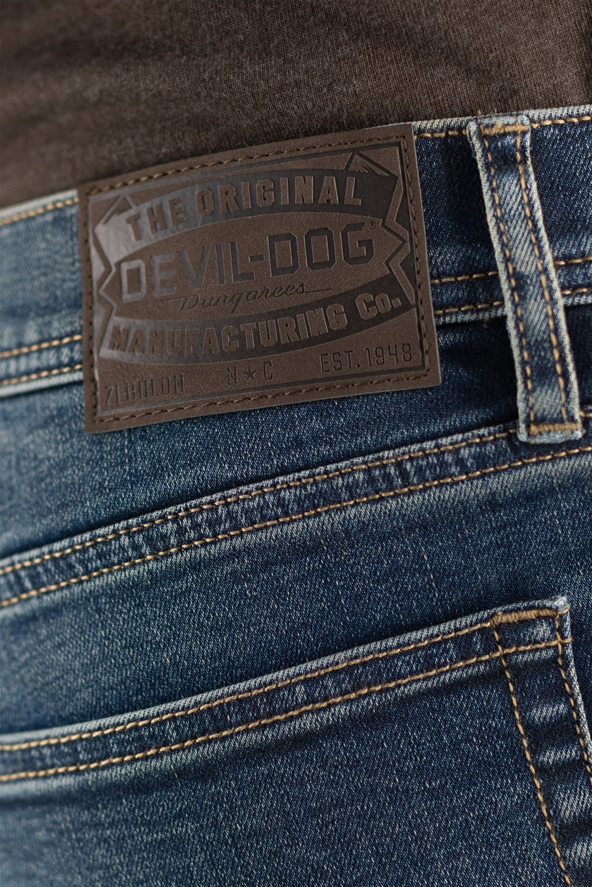 Experience superior comfort and flexibility with the Devil Dog Slim Straight Fit Jean, crafted from performance stretch denim. This innovative fabric ensures ease of movement, making it ideal for daily wear.