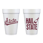Cup Size: 16 oz foam cup Packaging: 10 cups per sleeve Sold in wholesale bundles of 10 sleeves Officially Licensed Collegiate Product