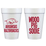 Cup Size: 16 oz foam cup Packaging: 10 cups per sleeve Sold in wholesale bundles of 10 sleeves Officially Licensed Collegiate Product