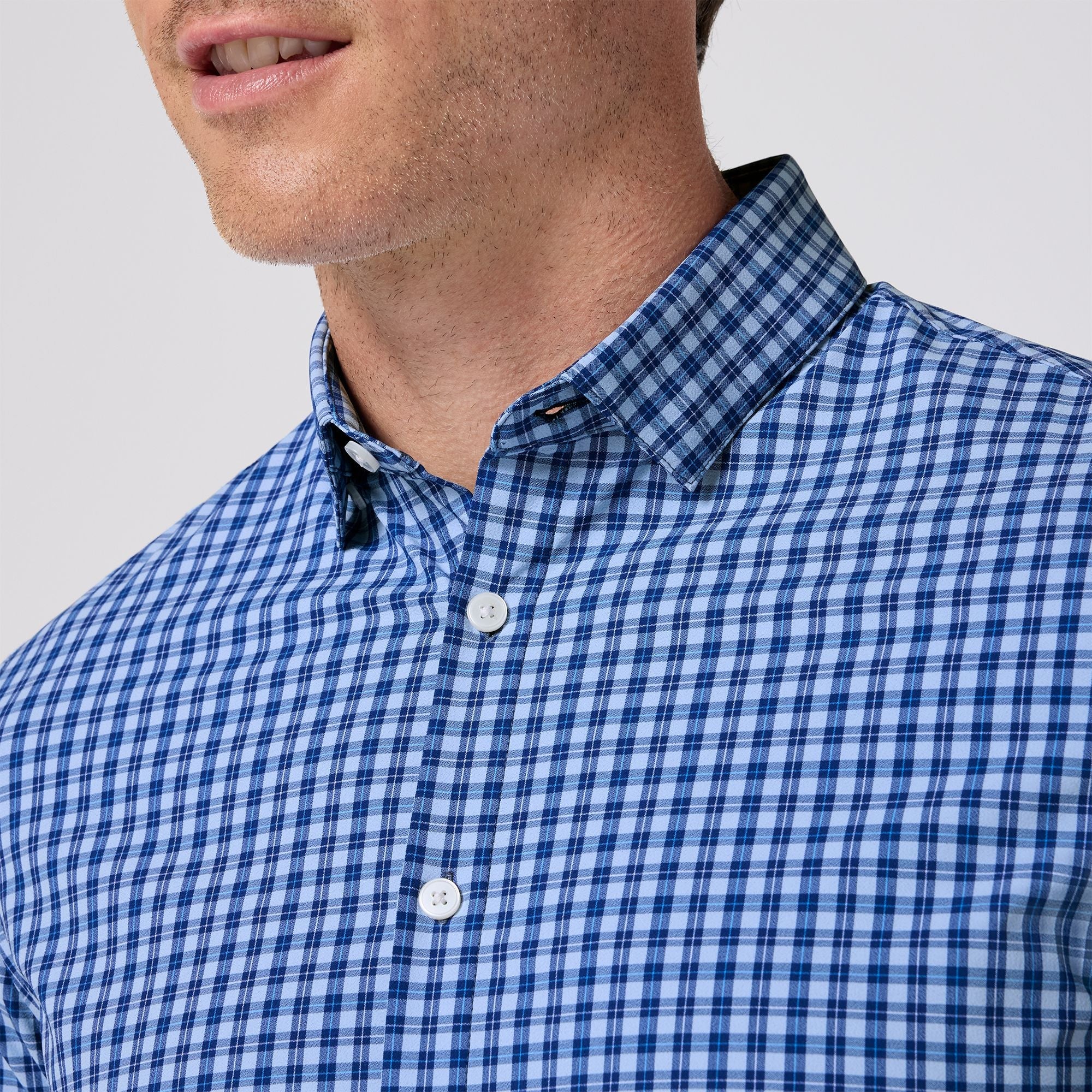 The Cobalt Ben Plaid Leeward No Tuck Dress Shirt offers an ideal blend of style and functionality, making it a versatile choice for both professional and casual settings. This performance dress shirt is crafted with a focus on comfort and ease of care.