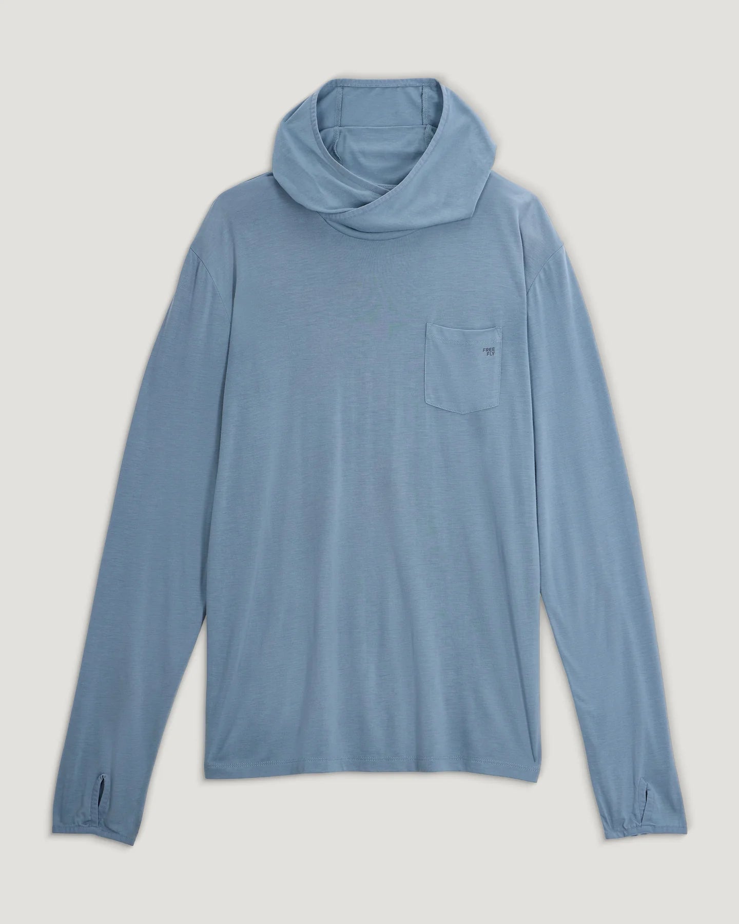 Crafted from viscose derived from bamboo, the fabric is naturally odor-resistant and moisture-wicking, ensuring you stay fresh and comfortable no matter the conditions. The hoodie features a crossover hood for complete neck coverage and thumbholes to keep the sleeves in place, adding to its functional design.
