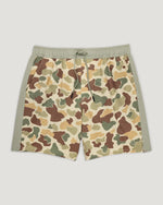 The vintage camo pattern adds a timeless touch, while the lightweight construction ensures you remain agile and unrestricted. These trunks are not only stylish but also practical, featuring mesh-lined hand pockets for easy drainage and a secure back zipper pocket for your essentials.