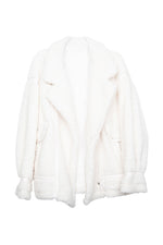 Discover the perfect blend of style and comfort with this white Sherpa Teddy Jacket. Designed for cooler days, this jacket offers a cozy, plush sherpa texture that feels like a warm embrace. Its oversized fit and notched lapel collar provide a chic yet practical addition to any outfit.