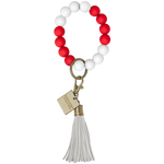 Crafted with durable silicone beads, this keychain is designed to withstand everyday wear and tear while providing a comfortable fit around your wrist. The vibrant red and white color scheme adds a pop of color to your outfit, making it easy to locate your keys.