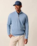 This quarter-zip pullover is crafted with moisture-wicking technology to keep you cool and dry during your game. The johnnie-O signature leather pull tab and raised embroidered surfer logo add distinctive style elements to this piece.