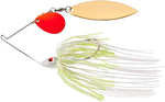 This spinnerbait features a large, black Colorado blade that generates a powerful thump to attract bass. Its dual chambered rattle adds extra noise to lure fish, while custom hand-tied skirts simulate lifelike movement and bulk. Built with a premium Sampo swivel and super stainless wire, it maximizes blade vibration and thump. A sharp Mustad NeedlePoint Hook ensures secure catches.